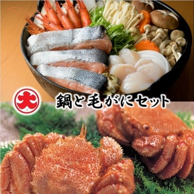 秋鮭ちゃんちゃん鍋と毛がに2尾をセットにしました。鍋と毛がにの両方をお楽しみ下さい。