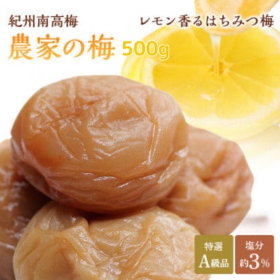 紀州南高梅「農家の梅」はちみつ梅(塩分約3%)500g ※レモンパウダー入り【nkn800-3】