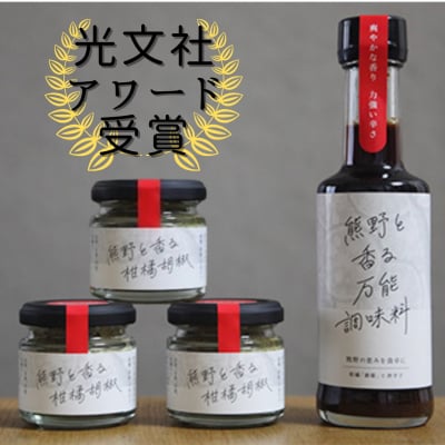【雑誌掲載】光文社アワード受賞 無添加 熊野と香る調味料セット4 (柑橘胡椒×3 万能調味料×1)