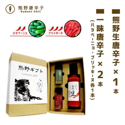 17【テレビで紹介されました】熊野唐辛子ギフト15(一味唐辛子(ハラペーニョ・プリッキーヌ)+生唐辛子)