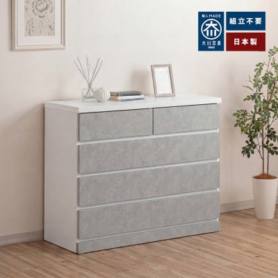 91大川家具の職人が仕立てた、完成品で届く日本製チェスト 100cm幅4段グレー スライドレール付