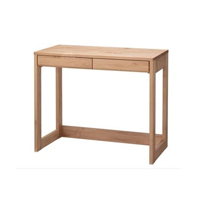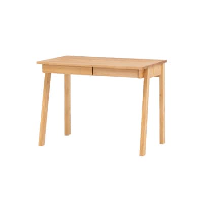 堀田木工所の学習デスク「スキップ 100本体」は、リビングに置いても邪魔にならない奥行55cm。引出し裏には1500W2口コンセントがついています。引出しは左右どちらにも取付けできます。丸みのある木製フックが2つ付属しています。※こちらは完成品でのお届けとなります。