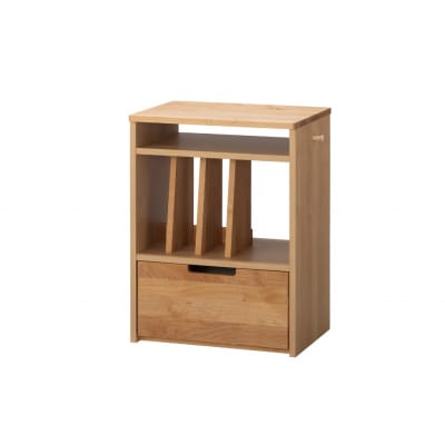 堀田木工所の学習デスク「フィーロ オープンワゴン」は、可動棚と脱着転び止めを付け替えることで左右どちらからでも出し入れ可能です。市販のファイルボックス等がしっかり収納でき、リビングダイニングでも活躍します。※こちらは完成品でのお届けです。キャスターのみお客様取付けとなります。