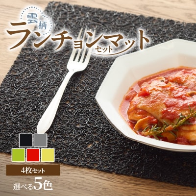 44お手入れ簡単!ビニール製ランチョンマット4枚セット 雲柄・ブラック[036T06-01]