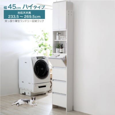 91突っ張り薄型ランドリー収納ラック ハイタイプ 幅45cm 洗面所 [川口工器]【139S003】