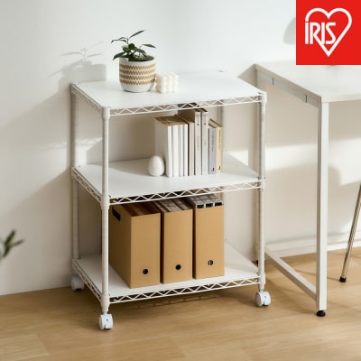シンプルなデザインで、使用場所を選ばない幅90cm、棚板は高さが自由に変えられる可動棚タイプ棚。