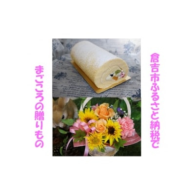 メモリアルギフトセット ケーキ ロールケーキ ギフト贈答 スイーツ 花 フラワーアレンジメント