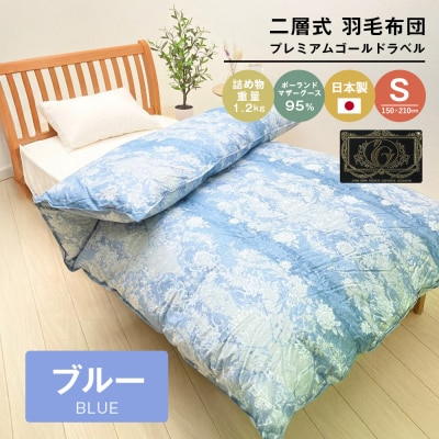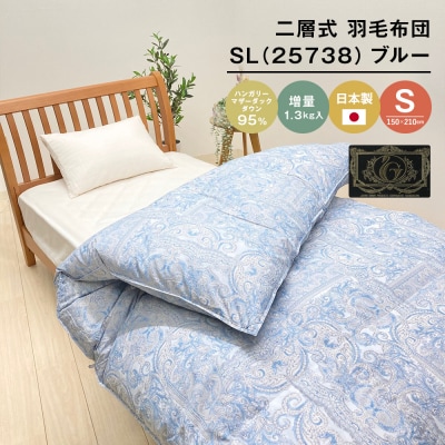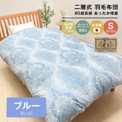 ハンガリーマザーダック95% 二層式 羽毛布団1.3kg SL 25738 ブルー ao12005