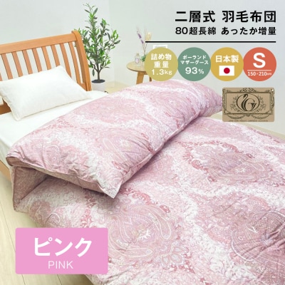 ハンガリーマザーダック95% 二層式 羽毛布団1.3kg SL 25738 ピンク ao12003