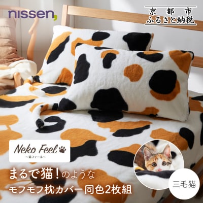 【ニッセン】まるで猫!のようなモフモフ枕カバー同色2枚組(猫Feel) 三毛猫