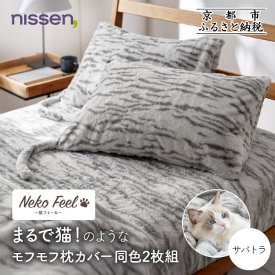 【ニッセン】まるで猫!のようなモフモフ枕カバー同色2枚組(猫Feel) サバトラ