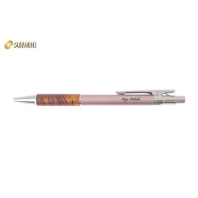 23【ピンク】ノック式琥珀ボールペン