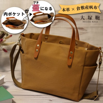 【寄付金額変更】【倉敷産帆布×本革】2way トートバッグ(キャメル×ブラウン)
