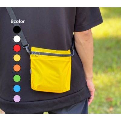45【黄色】ポケット付き軽量ナイロンショルダーバッグ サコッシュ 撥水ポシェット