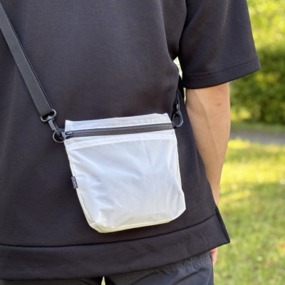 46【白】ポケット付き軽量ナイロンショルダーバッグ サコッシュ 撥水ポシェット