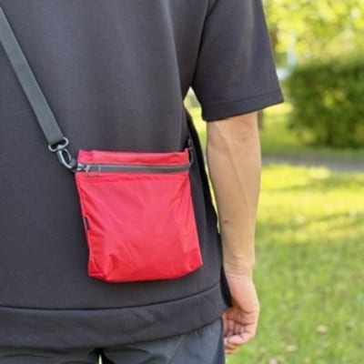 48【赤】ポケット付き軽量ナイロンショルダーバッグ サコッシュ 撥水ポシェット