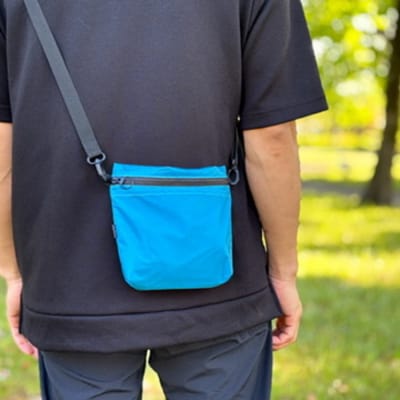 49【水色】ポケット付き軽量ナイロンショルダーバッグ サコッシュ 撥水ポシェット