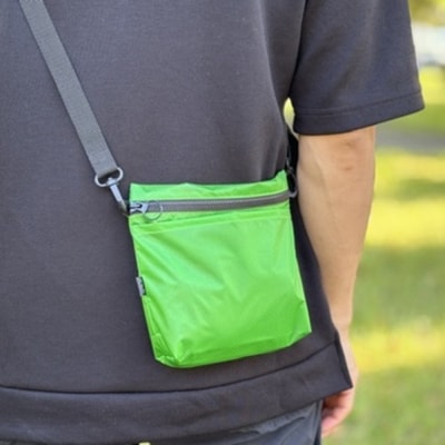 50【緑】ポケット付き軽量ナイロンショルダーバッグ サコッシュ 撥水ポシェット