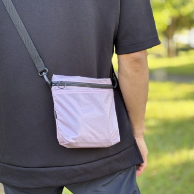 51【ラベンダー】ポケット付き軽量ナイロンショルダーバッグ サコッシュ 撥水ポシェット
