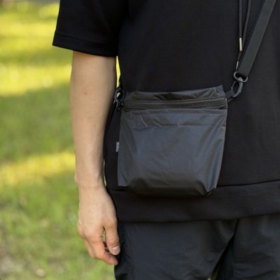 52【黒】ポケット付き軽量ナイロンショルダーバッグ サコッシュ 撥水ポシェット