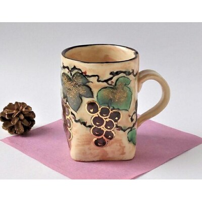 3ギャラリー洛中洛外 形が特徴的で実り多い葡萄が華やか 浮花葡萄マグカップ|陶器 人気 マグカップ
