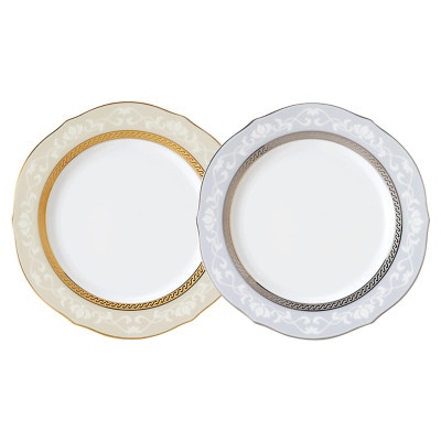 ノリタケ【ハンプシャーゴールド&プラチナ】23cmアクセントプレートペア(色変り)