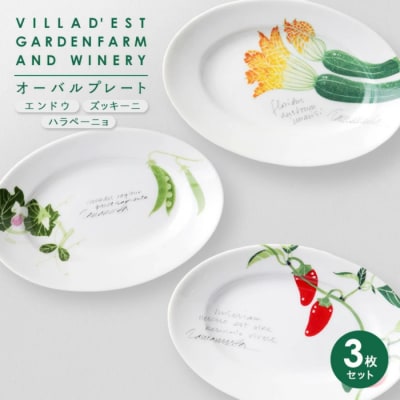 【ヴィラデストワイナリー】ベジタブルシリーズ食器 オーバルプレート(楕円形)3枚セット