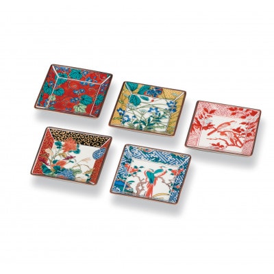 九谷焼の優しさを五草花で表現した使いやすい大きさの小皿の5枚セットです。