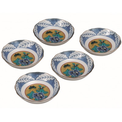 九谷焼 4.5号皿揃 花鳥絵変り(5枚セット)
