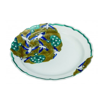 鳥獣戯画を九谷焼の色合いで表現したお皿です