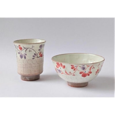 53【ギャラリー洛中洛外】三島模様と花柄の対比が素敵 粉引唐草ひと膳セット
