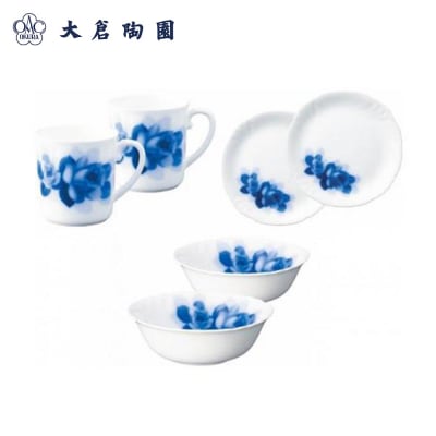 87モーニング碗皿ペアセット(ブルーローズ)〈大倉陶園〉