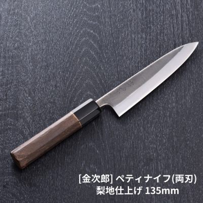 75[金次郎] ペティナイフ(両刃) 刃渡り135mm 梨地仕上げ 鋼 ステンレス 【121S013】