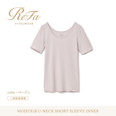 90【ベージュ SSサイズ】リファ バイタルテック モイストリブ Uネックショートスリーブインナー