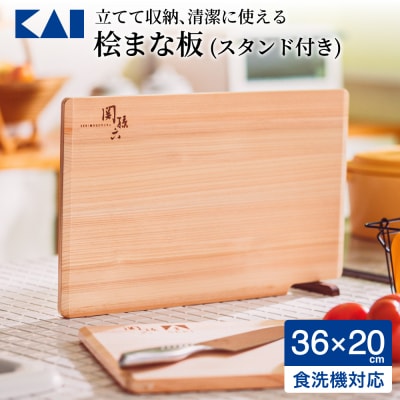 16◇貝印 関孫六 桧(ひのき)まな板 スタンド付 食洗機・乾燥機対応 360×200mm キッチン用品