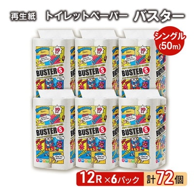 5トイレットペーパー 「バスター」 12R シングル×6パック 72個[No.5335-0370]