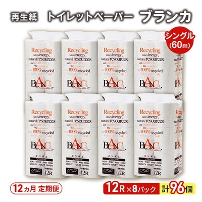 6512ヵ月定期便 トイレットペーパー シングル 96個×12回 [No.5335-1824]