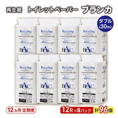 5612ヵ月定期便 トイレットペーパー ダブル 96個×12回 [No.5335-1815]