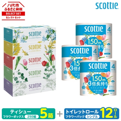 23【毎月定期便】ティシュー5箱+トイレットペーパー12ロール シングル スコッティ_186-6570