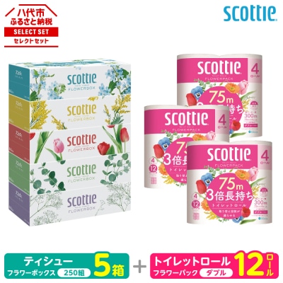 5スコッティ ティシュー 250組 5箱 トイレットロール ダブル 12ロール_186-6552