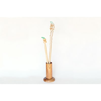 天然木を削りだして作ったくつべら、くつべら立て