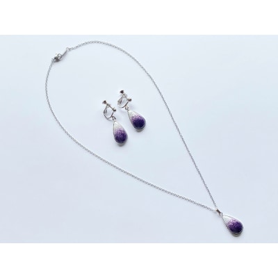 藤色の七宝焼アクセサリー2点セット(ネックレス、イヤリング)