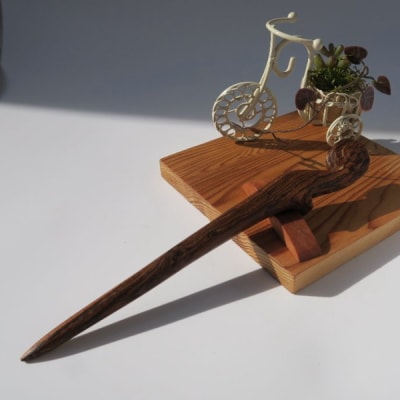 ☆特徴 1.木製かんざしはデザインにこだわり、仕上がりのスベスベ感を保ちながら、ご使用時ガッチリ固定(緩みにくい)もできます。 2.素材を生かした、貴方だけの一品物です。 3.塗装は一切してませんので、使い込むほど光沢が増します。 4.木製かんざしには、髪をしっかり固定する「固定型」と「飾り用」が有ります。