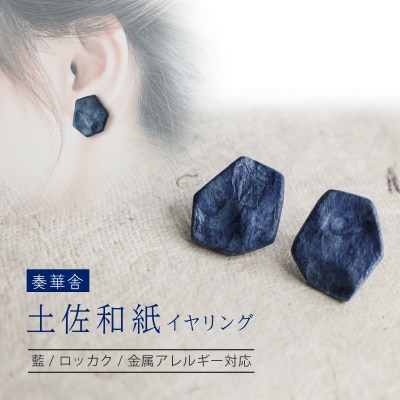 90【奏華舎】~装う土佐和紙~ 手漉き藍紙イヤリング(藍 / ロッカク / アレルギー対応)