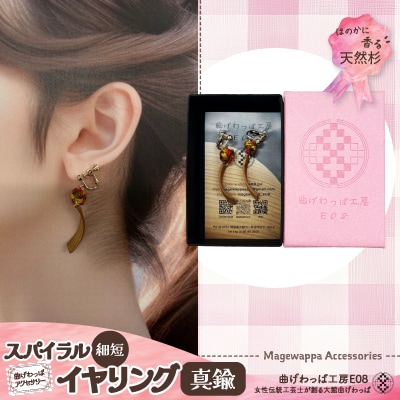 【曲げわっぱアクセサリー】スパイラルタイプ(細短デザイン)イヤリング真鍮タイプ