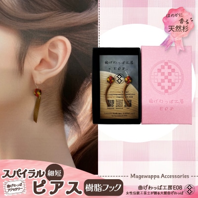 【曲げわっぱアクセサリー】スパイラルタイプ(細短デザイン)ピアス樹脂フックタイプ