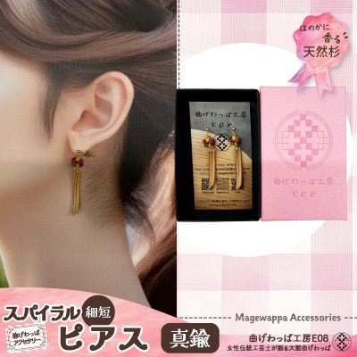 【曲げわっぱアクセサリー】スパイラルタイプ(細短デザイン) ピアス真鍮タイプ
