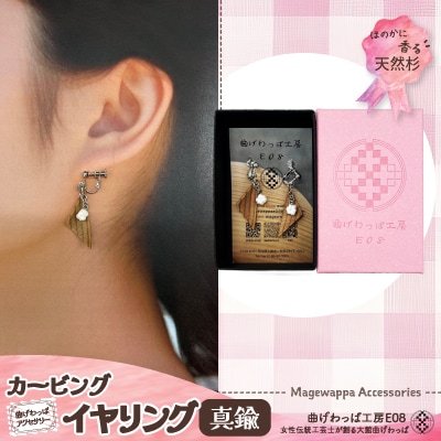 【曲げわっぱアクセサリー】カービングタイプ イヤリング真鍮タイプ