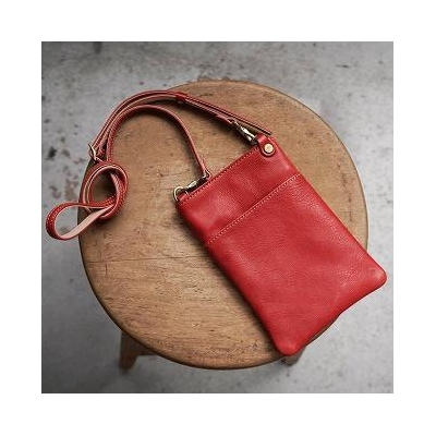 54【minca】 全6色 栃木レザーのスマホショルダー /レッド