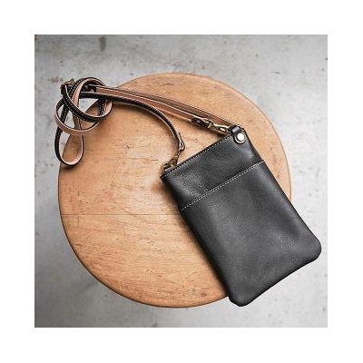 55【minca】 全6色 栃木レザーのスマホショルダー /ブラック